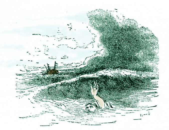 The following spring, Haskell was again fishing on Georges Bank. While the men were enjoying a calm night, over the sides of the ship came what appeared to be 24 ghostly men who silently took up their positions and began to fish, then coiled their gear and climbed back down into the ocean. Alarmed, Curtis ordered his crew back to port. Each year following, crews reported these haunts until finally no man dared go out on her. Abandoned, the ‘cursed’ ship sank in Gloucester Harbor.